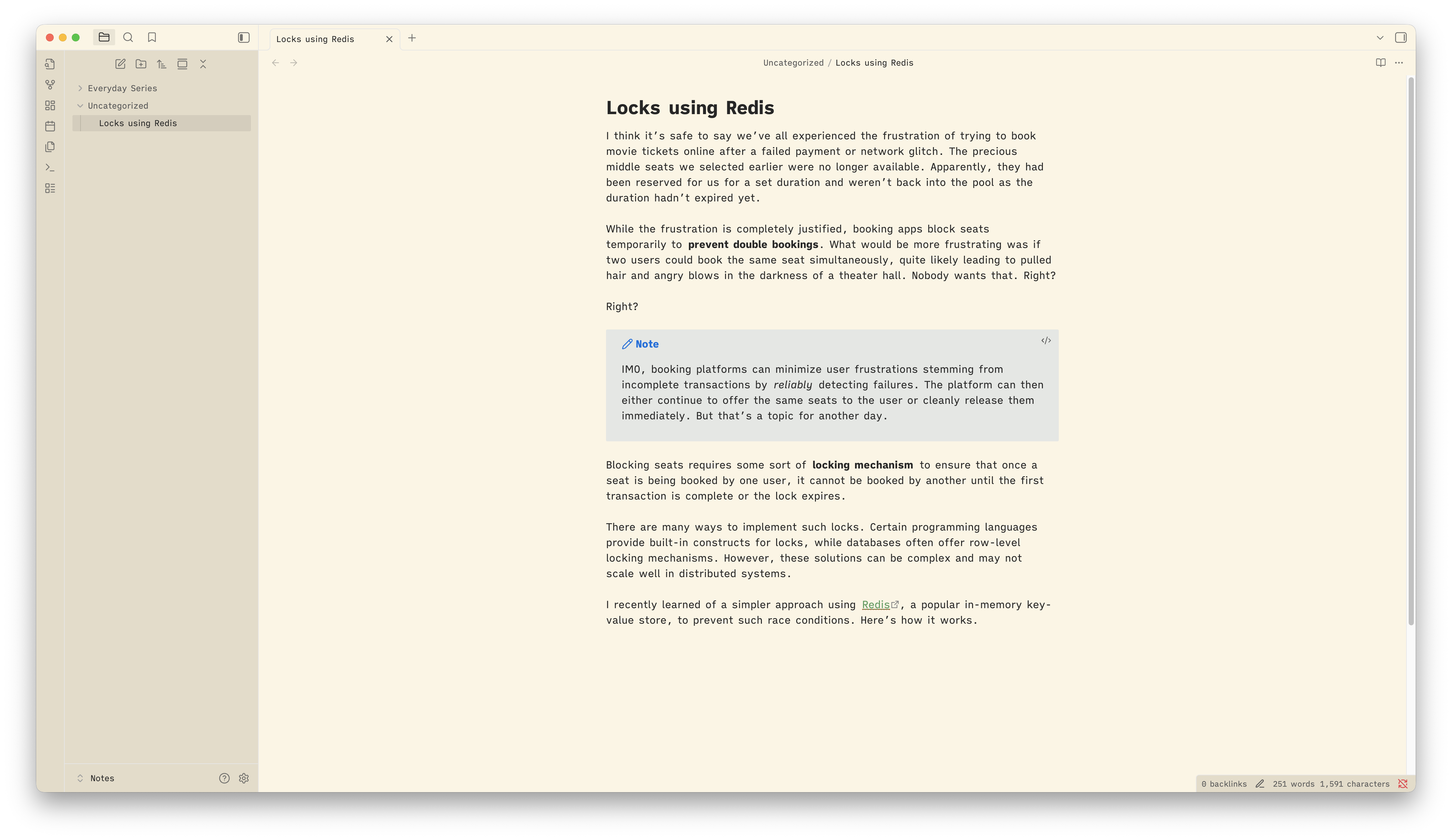 What a shitty PDF export in Apple’s Notes app! Bullet points are often misaligned. Basic formatting comes off easily. Trying out Obsidian. Typewriter theme is 24K gold. PDF export working perfectly so far. File sync via iCloud is cherry on top.